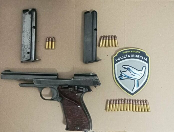Morelia, Mich.- Domingo 01 de marzo de 2026.- Tres hombres en posesión de un arma de fuego fueron detenidos por elementos de la Policía Municipal en la colonia Trincheras de Morelos, ubicada al sur de Morelia, informó la Secretaría de Seguridad y Protección Ciudadana de Morelia.