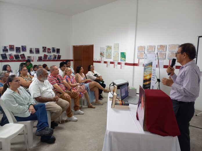 Ante medio centenar de estudiantes y público en general, Campos Oregón compartió detalles sobre el proceso de investigación y el contenido de esta publicación que busca fortalecer la identidad local y rendir homenaje a quienes sentaron las bases del municipio.