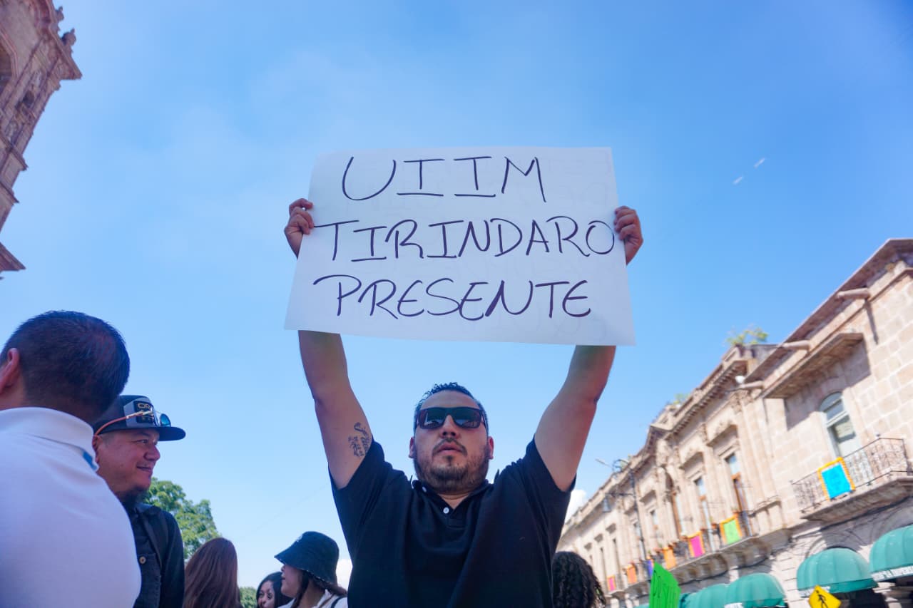 Morelia, Michoacán | Redacción ACG.- Esta mañana, trabajadores y maestros sindicalizados de la Universidad Intercultural Indígena de Michoacán (UIIM) iniciaron una manifestación frente a Palacio de Gobierno, en el centro de Morelia.