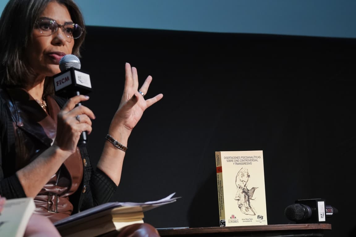 Por su parte, María Guadalupe Aguilar —quien escribió sobre la película Club Cero— agradeció al FICM por el espacio y subrayó la importancia de tender puentes entre el arte cinematográfico y las ciencias humanas. “El cine nos confronta, nos espejea y nos transforma. Leerlo desde el psicoanálisis nos permite descubrir lo que las imágenes callan”, comentó.