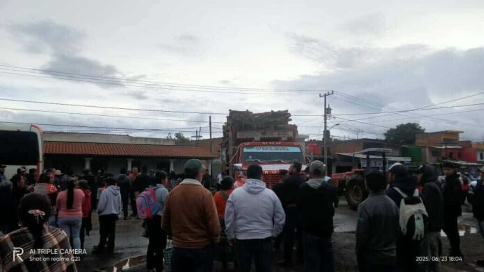 Quiroga, Mich.- Lunes 23 de junio de 2025.- Un grupo de comuneros de Santa Fe de la Laguna bloqueó la carretera Quiroga-Zacapu, esto como protesta por la detención de seis de sus pobladores, a quienes los elementos de la Fiscalía General del Estado (FGE) les aseguraron recurso forestal maderable.