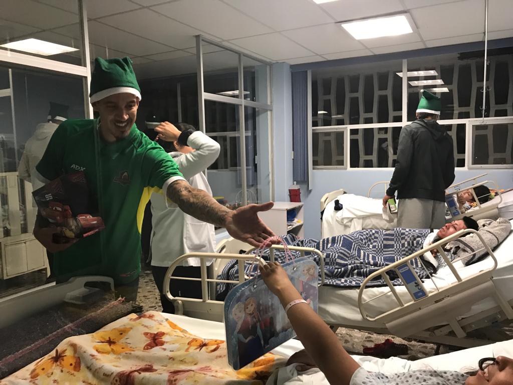 Con el corazón inquebrantable que los caracteriza y concentrado en la entrada principal del nosocomio que se ubica en el Bosque Cuauhtémoc, los jugadores sensiblemente emocionados compartieron en cada una de las áreas del hospital, un grato momento al obsequiar juguetes a los infantes.