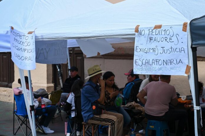Morelia, Michoacán | Redacción ACG.– Por segundo día consecutivo permanece bloqueada la avenida Madero, frente al Congreso del Estado, donde integrantes de los Sindicatos Unidos de Salud mantienen su protesta ante la falta de diálogo con las autoridades. Entre las demandas de los manifestantes está el pago de prestaciones pendientes y la asignación irreductible de presupuesto para la Secretaría de Salud entre otras.
