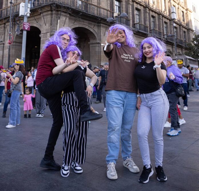 Fans se concentran con típicos trajes de sus videos oficiales, uno de los más icónicos es “Las de la intuición”, canción la cual, fue estrenada en el año 2005, donde sale caracterizada con una vestimenta compuesta de una camisa blanca con corbata, una falda negra y una peluca morada llamativa, conjunto el cual llena de “vibra”, como diría la chaviza, para vivir este gran momento.