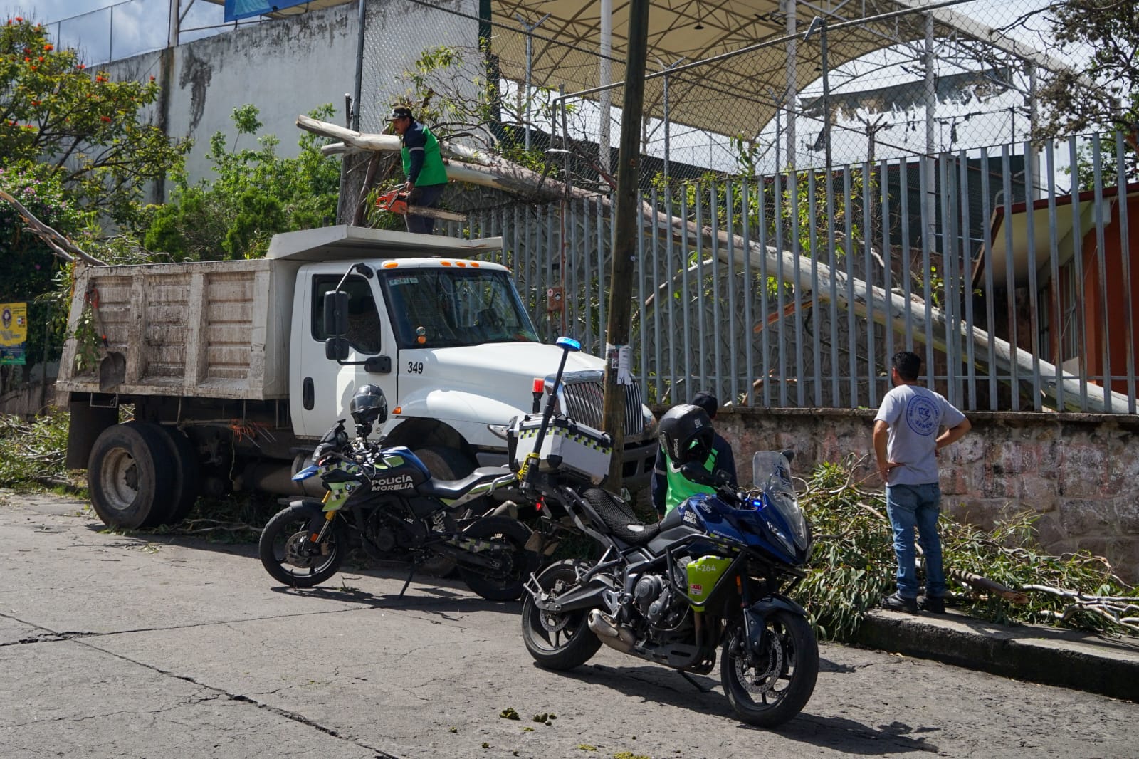 Morelia, Mich. | Alfredo Soria/ACG.- Alrededor de las 13 horas se reportó la caída de una rama de un eucalipto que se encuentra al interior de la escuela Primaria Presidente Adolfo López Mateos en la calle Primero de Mayo en la colonia Centro.
