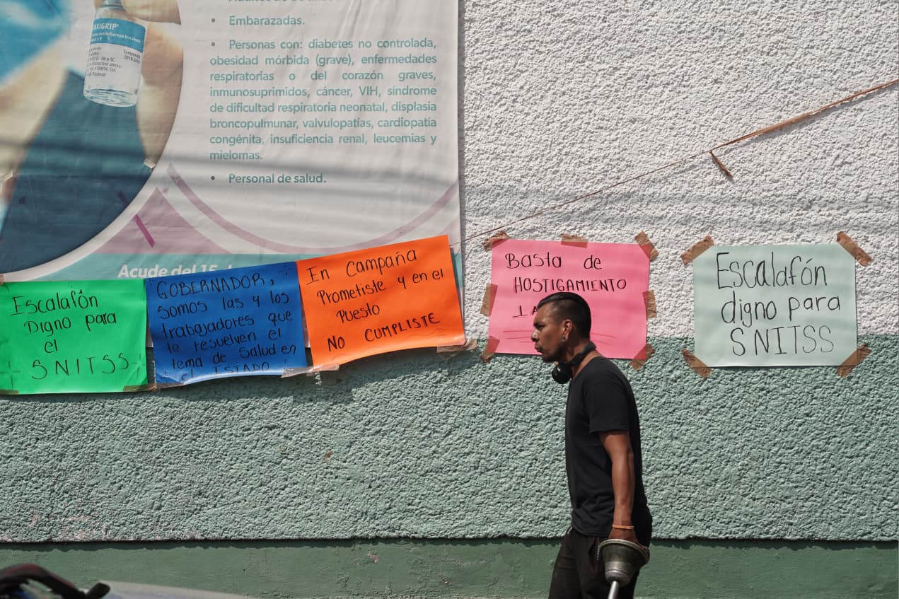 Desde hace más de dos semanas, los manifestantes mantienen cerrados los accesos a diversas dependencias del sector salud como parte de sus demandas laborales, lo que ha generado afectaciones en las oficinas administrativas de la dependencia.