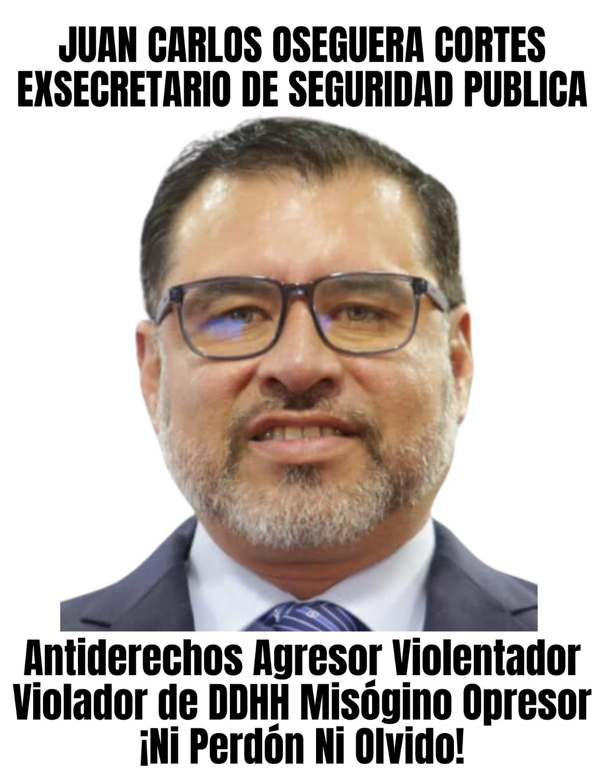 Juan Carlos Oseguera Cortés, exsecretario de Seguridad Pública, calificado como antiderechos, agresor, violentador de derechos humanos y misógino opresor.
