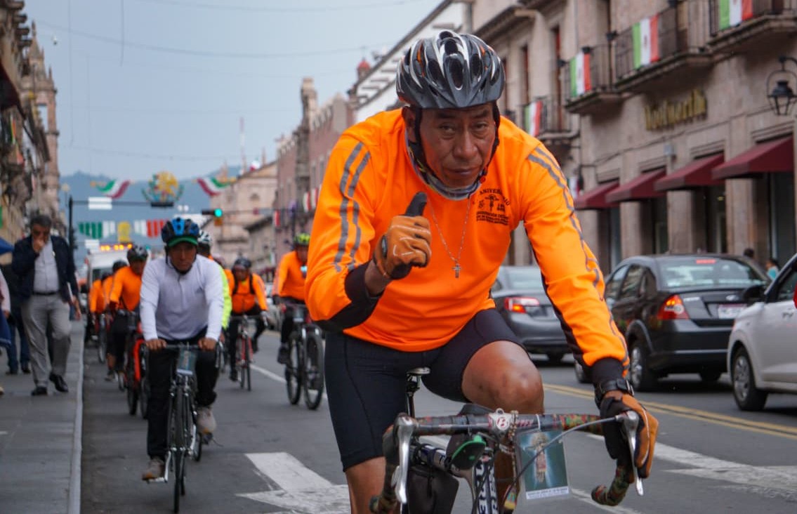 Morelia, Mich..- La tradicional peregrinación ciclista con destino a San Juan Nuevo, Michoacán, en honor al Cristo de la Salud, tuvo como punto de paso la Catedral de Morelia, donde grupos provenientes de distintas localidades del Estado de México hicieron una pausa en su trayecto.