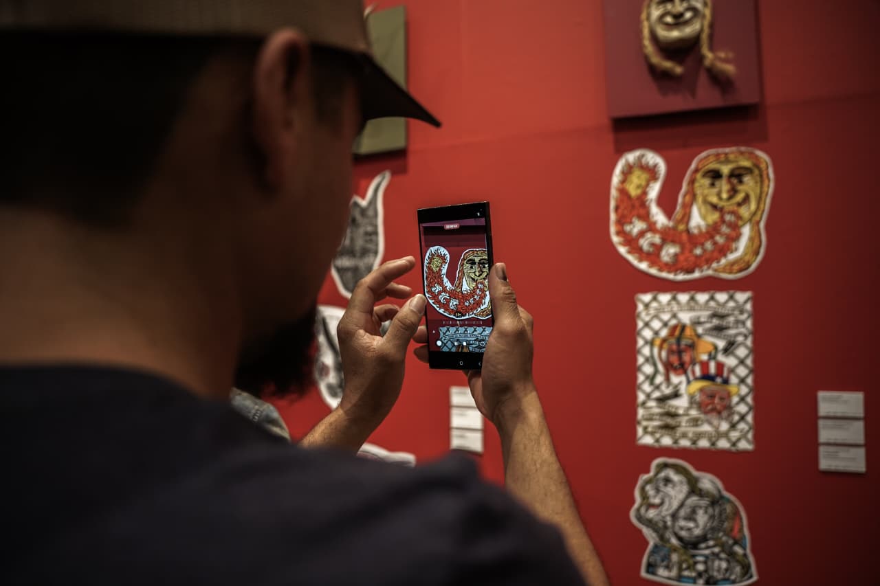 Uno de los ejes de la muestra es la colección de máscaras donadas por los coleccionistas Pat Alzobaie, y Thomas Yost, de las cuales 20 piezas integran el núcleo museográfico de la exposición, dialogando con las propuestas gráficas contemporáneas que reinterpretan el simbolismo de la máscara desde la experiencia migrante.
