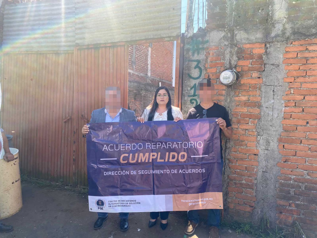 Uruapan, Michoacán, a 10 de noviembre de 2025.- La Fiscalía General del Estado de Michoacán (FGE), a través del Centro de Mecanismos Alternativos de Solución de Controversias (CMASC), logró la celebración de un acuerdo reparatorio que permitió la restitución de un inmueble a su legítima propietaria, víctima de despojo en Uruapan.