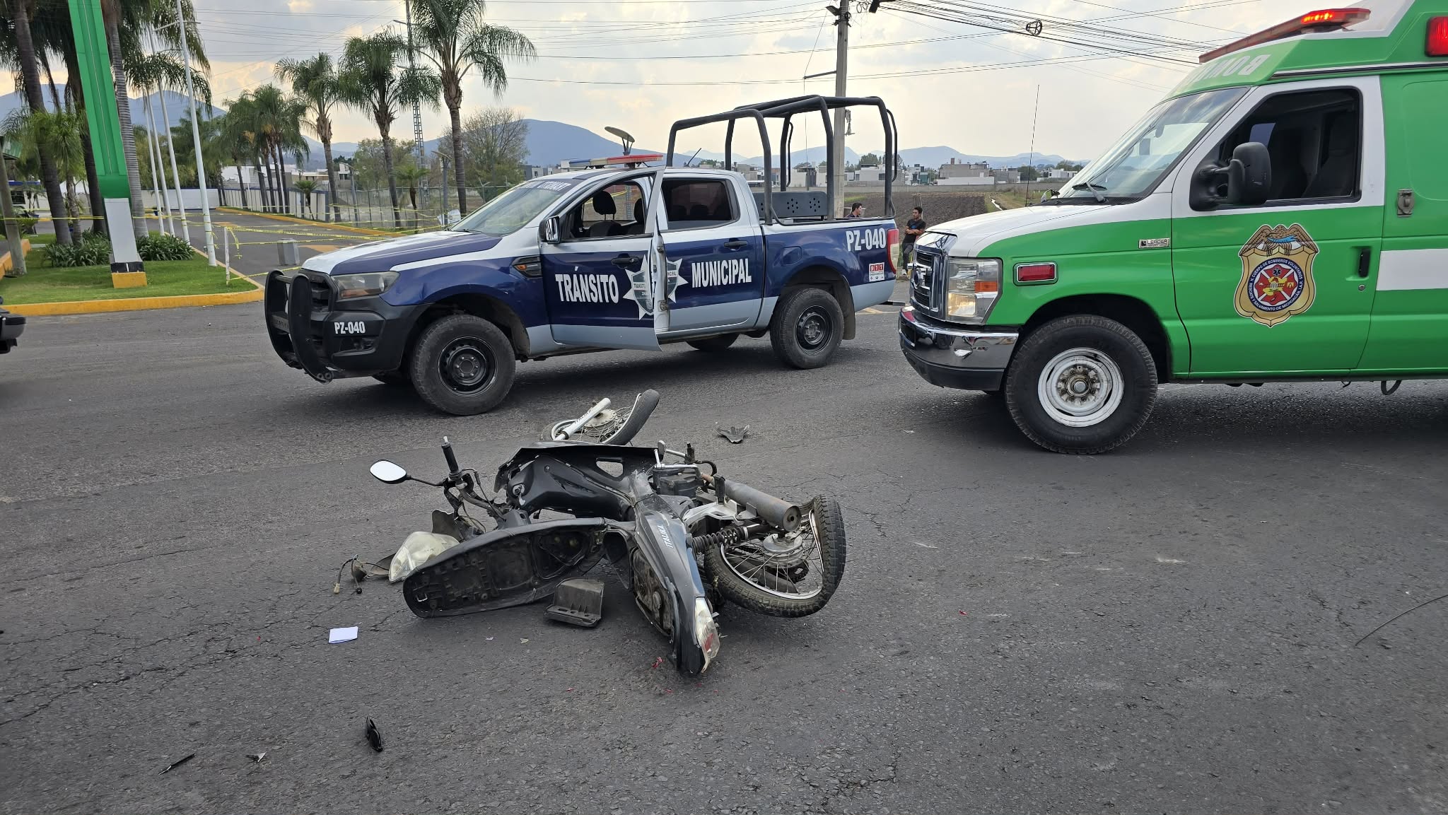 Elementos de Tránsito Municipal de Zamora aseguraron la moto de la marca Italika color negro sin placas y el auto involucrado, un Nissan Sentra color arena, con placas PUU-287-C, para que sea la autoridad competente la que determine responsabilidades.