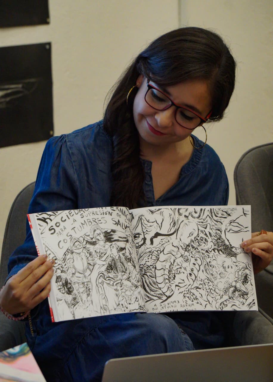 La colaboración con Carolina Ortega en el fanzine no solo fue un trabajo de diseño y gestión, sino también una forma de capturar y fragmentar la experiencia del mural, permitiendo al público llevarse un pedazo de este universo de ideas.