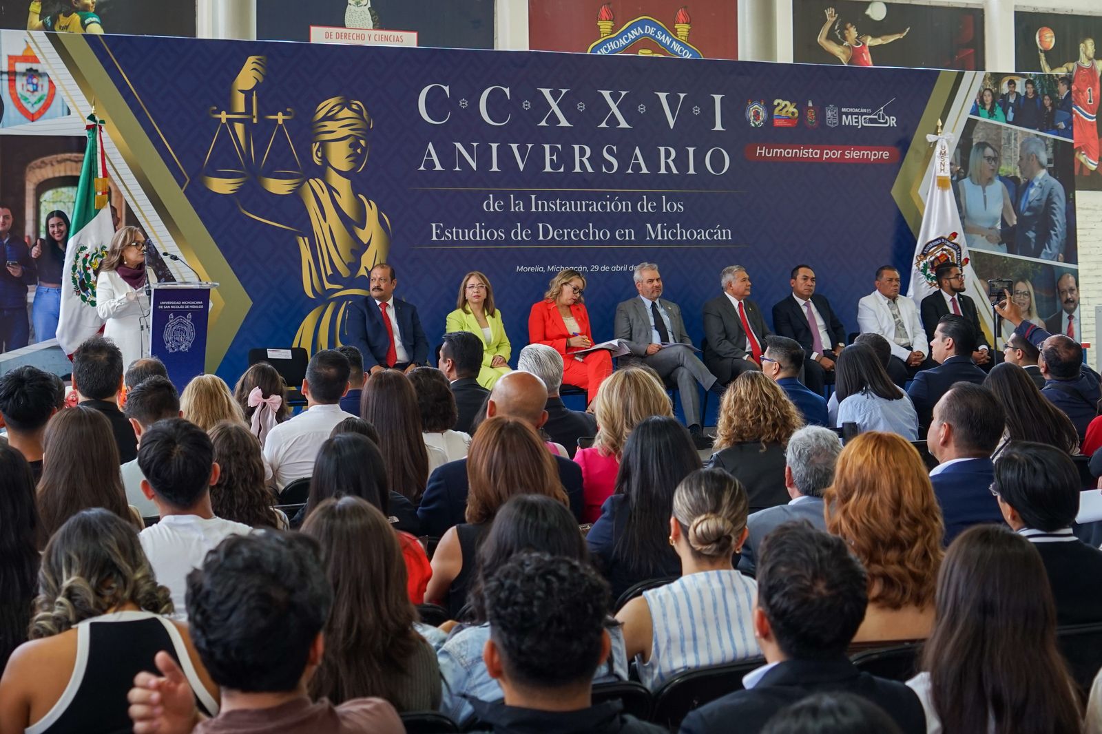 Morelia, Mich. | Acueducto Noticias/ACG-Alfredo Soria.La Facultad de Derecho y Ciencias Sociales de la Universidad Michoacana celebró con una ceremonia solemne el CCXXVI Aniversario de la Instauración de los Estudios de Derecho en Michoacán, reafirmando su papel histórico en la formación jurídica del estado.