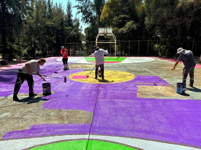 Uruapan, rehabilitan canchas de básquetbol en la Unidad Deportiva
