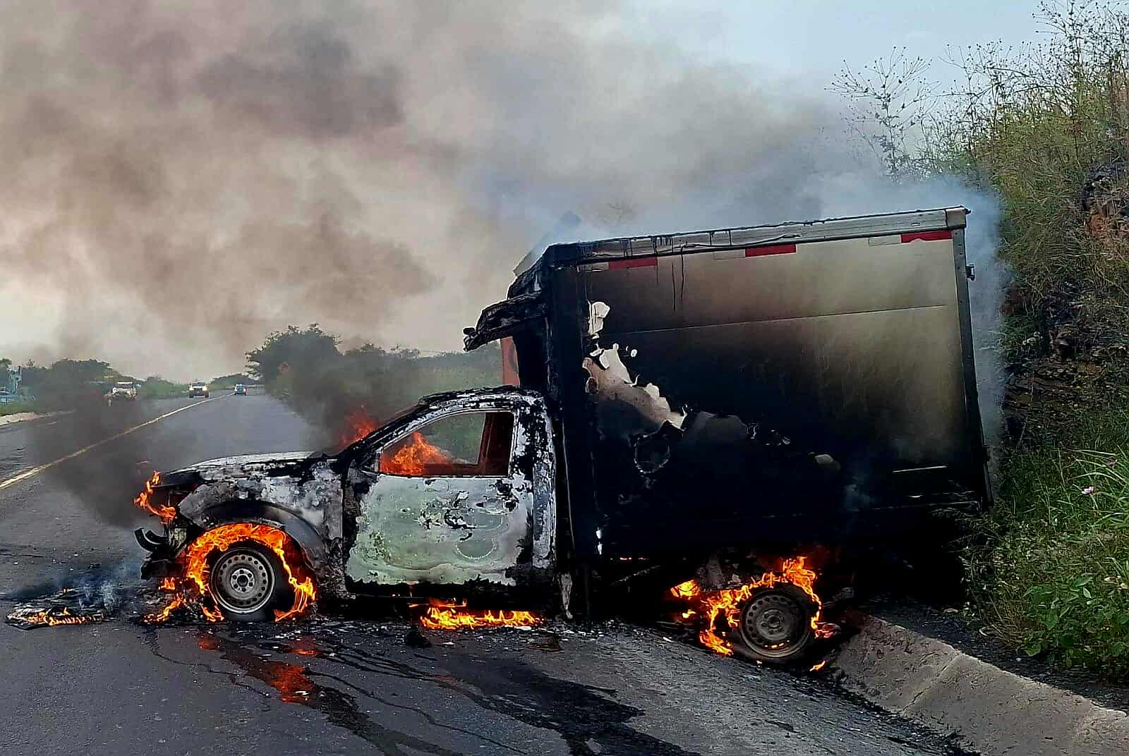 Taretan, Mich.- 25 de octubre de 2025.- Una camioneta de carga ardió en llamas sobre la autopista Siglo XXI, resultando perdida total, sin que se reportaran personas lesionadas, a decir de fuentes de rescate.
