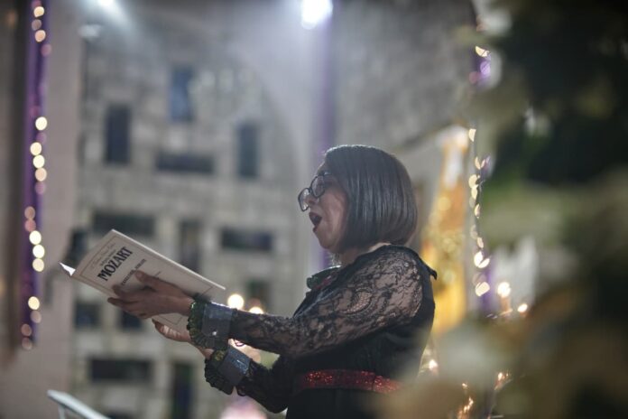 El programa recorrió obras de Johann Sebastian Bach, Wolfgang Amadeus Mozart y piezas del compositor Francisco Guererro, además de villancicos del repertorio novohispano y europeo, interpretados con órgano, teclado y algunos instrumentos de cuerda y viento, que acompañaron las voces del contratenor y la soprano.