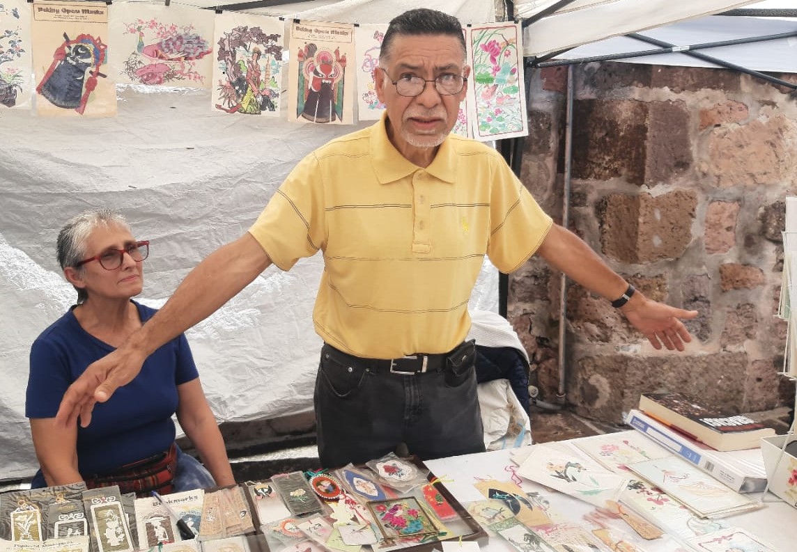 Hoy, jubilado, vende artesanía proveniente de la China Popular, piezas de papel arroz y paja de trigo, todo hecho a mano en los años 70 y 80 del siglo pasado, «todavía gobernaba Mao Tse-Tung», recordó.