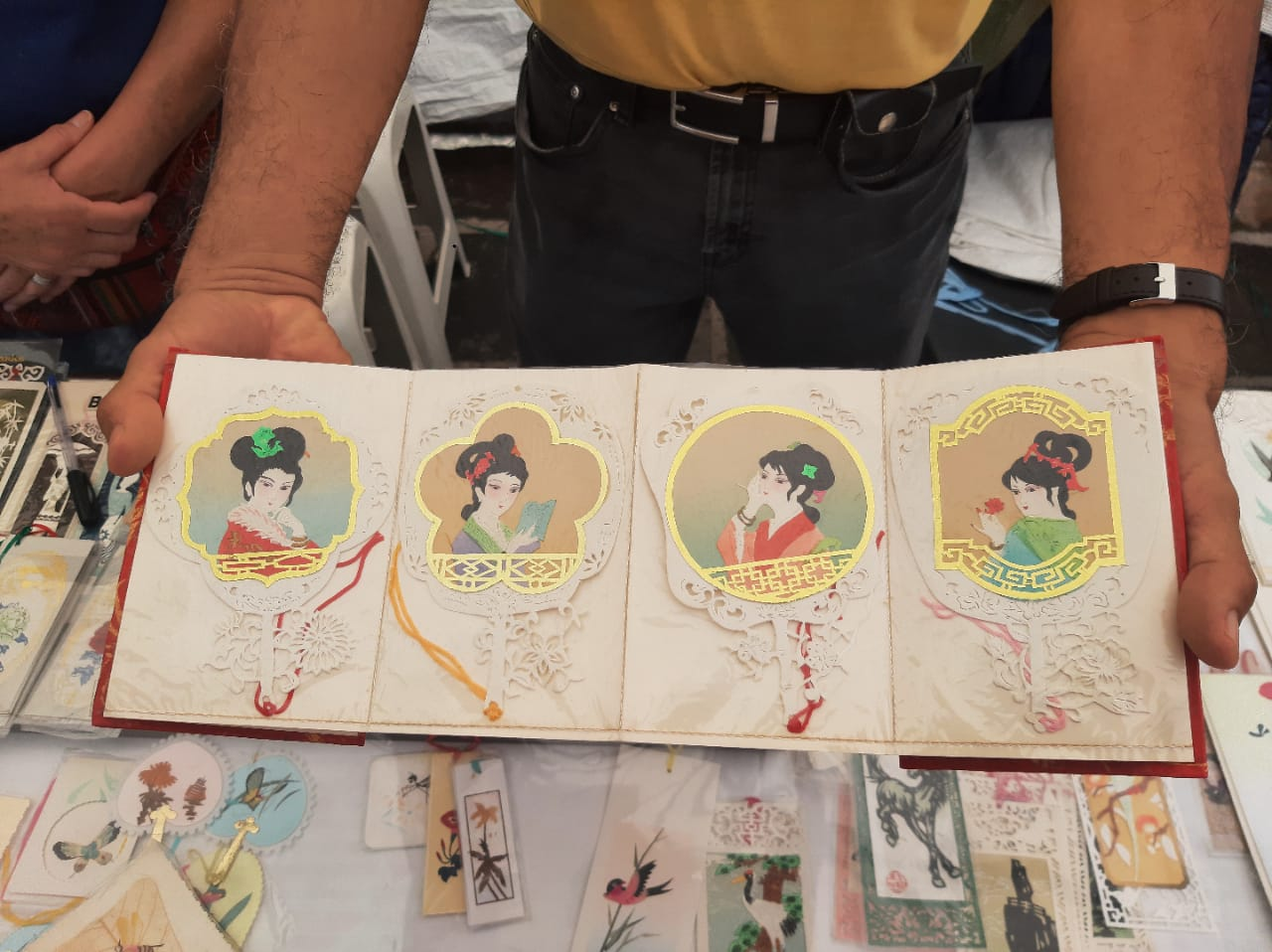Entre los diferentes puestos de un bazar itinerante en la plaza del Carmen, destacaban las imágenes coloridas que, por su estilo, parecían ser de otro país, quizá Japón.