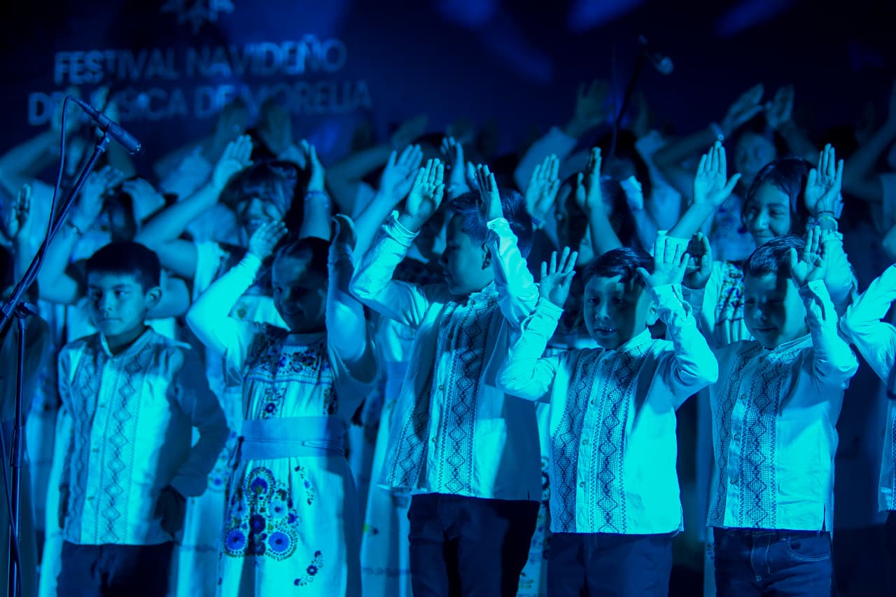 Morelia, Michoacán | Redacción Agencia ACG.- La música volvió a ser un punto de encuentro para las familias morelianas durante el XIII Festival Navideño de Música de Morelia. En el Palacio Clavijero, los coros comunitarios más consolidando de Jesús del Monte y Tiripetío emocionaron al público con un repertorio de villancicos y piezas sacras que llenaron el recinto de espiritualidad y alegría navideña.