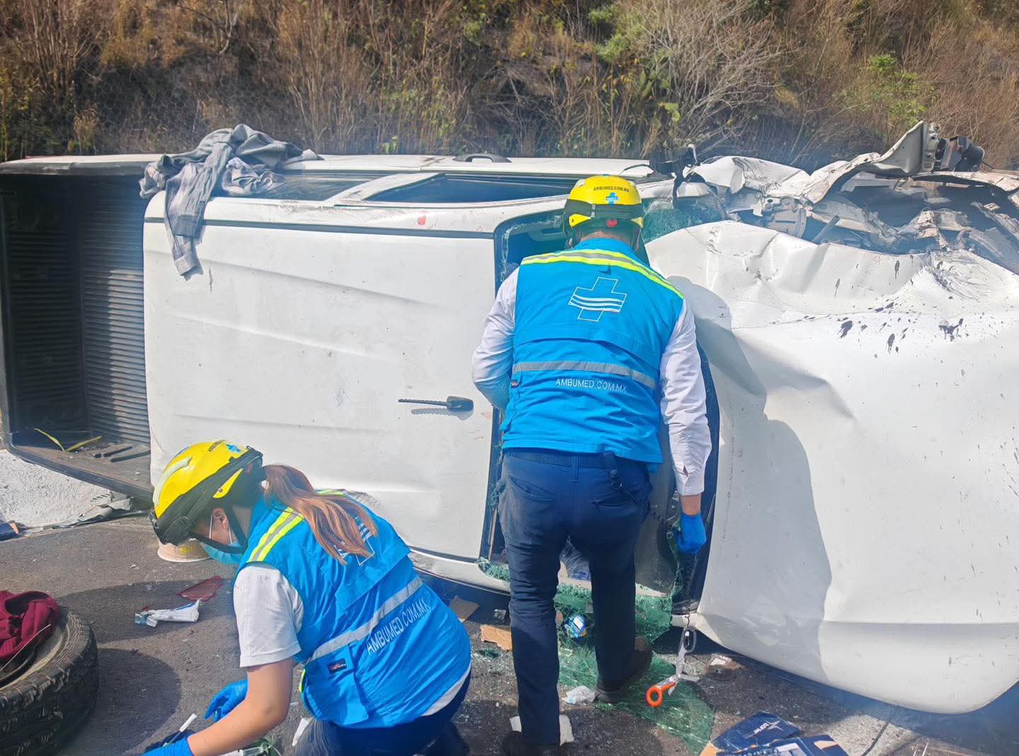 El accidente fue a la altura del kilómetro 50, donde paramédicos de AMBUMED Autopistas Michoacán encontraron una camioneta Toyota, color blanco y con placas del estado de Guanajuato, severamente dañada tras quedar fuera de la carpeta asfáltica.