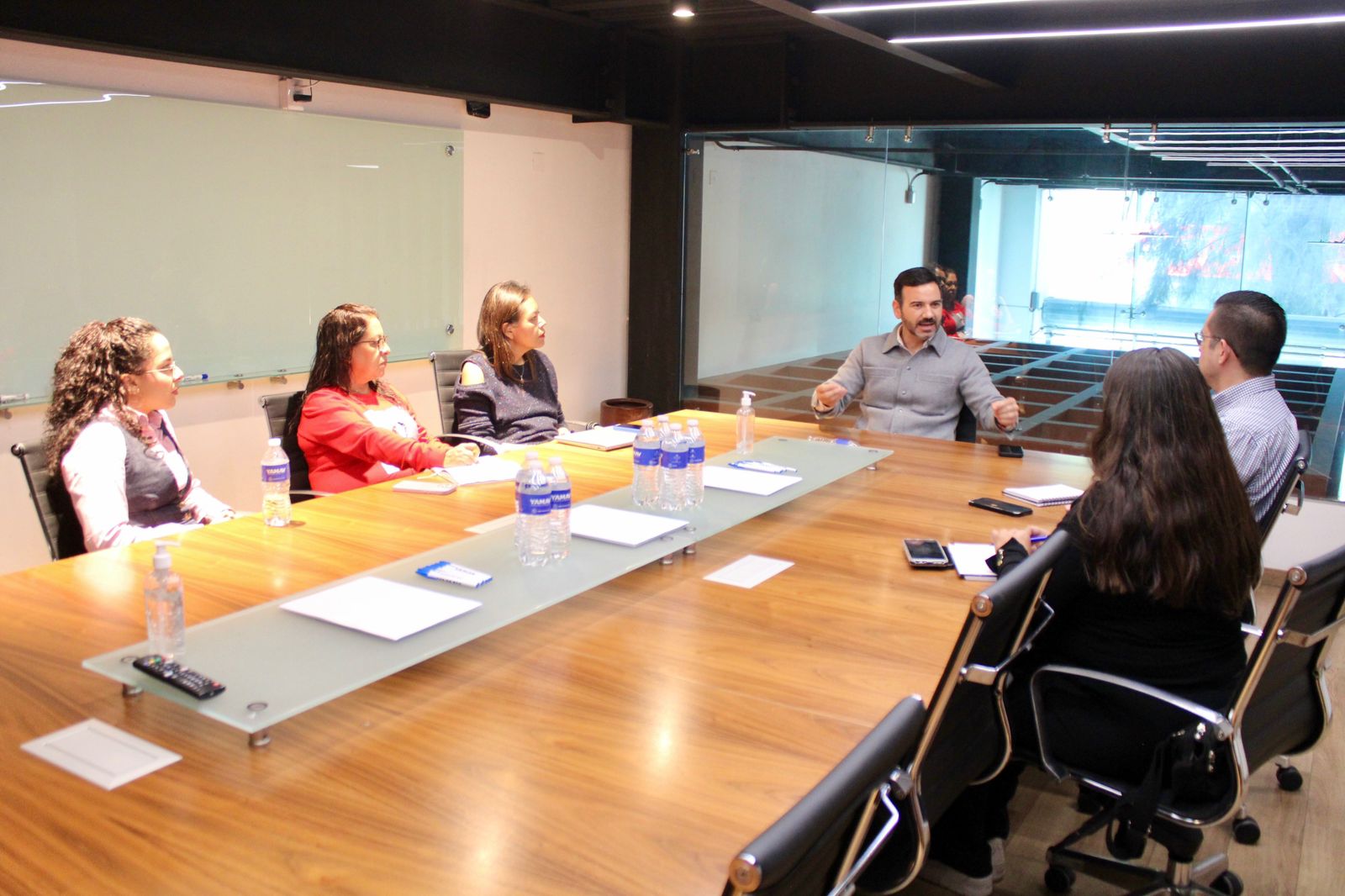 La mesa de trabajo tuvo el objetivo de generar más Puntos Naranja en las sucursales de esta cadena de tiendas de autoservicio, por lo cual participó personal encabezado por la titular de Semmujeris, Nuria Hernández Abarca.